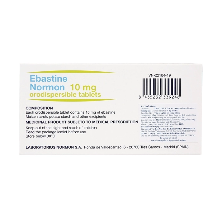 Ebastine Normon 10mg Orodispersible Tablets Laboratorios Normon 2 vỉ x 10 viên (Ebastine)