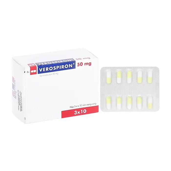 Thuốc lợi tiểu Verospiron 50 mg, Spironolactone 50mg | Hộp 3 vỉ x 10 viên