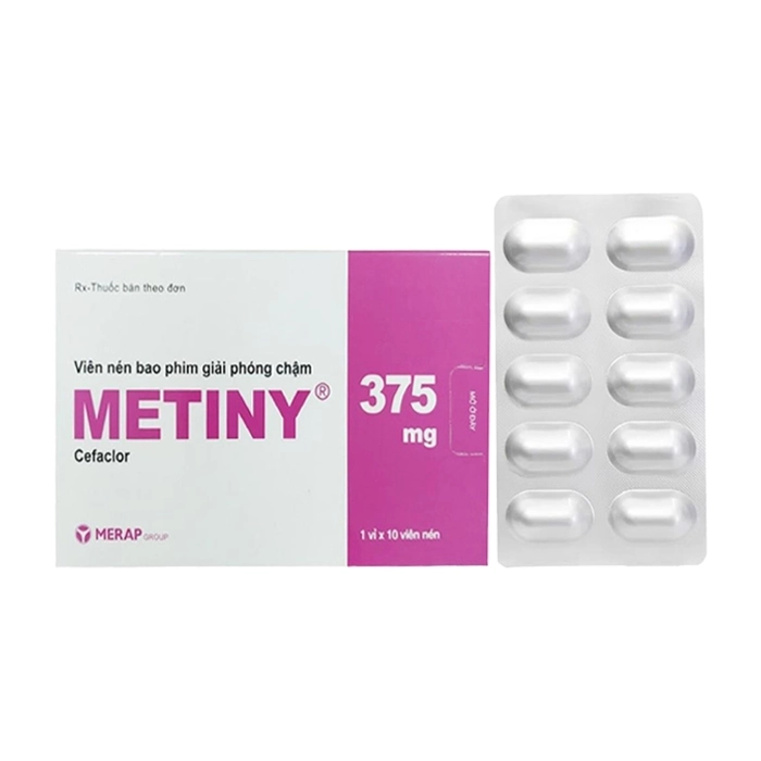 Thuốc Metiny - Cefaclor 375mg, Hộp 1 vỉ x 10 viên