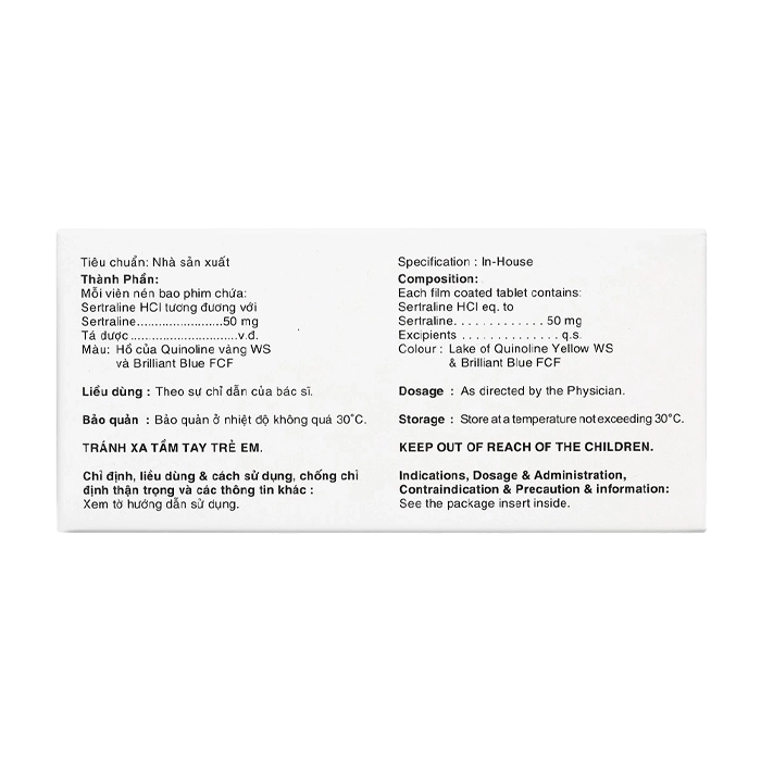 - Liều tối đa hàng ngày là 200mg sertraline.